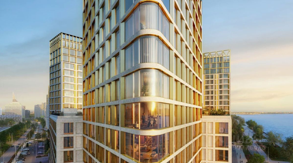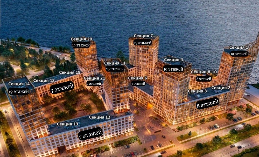 О ЖИЛОМ КОМПЛЕКСЕ: Проект Glorax Aura Vasileostrovsky представляет собой квартал в сегменте премиум. Над архитектурной концепцией объекта работал голландский консорциум КСАР+Orange Architects совместно с петербургским бюро А.Лен. Дома выполнены в стиле хаотизм и украшены башнями заостренными золотыми верхушками с изогнутой неправильной формой. На территории комплекса выполнены озеленение и ландшафтный дизайн. В вечернее время включается подсветка деревьев.