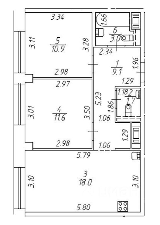 ОБ ОБЪЕКТЕ: Количество комнат: 2-комнатная Площадь: 54,3 м² Площадь кухни: 18 м² + Квартира расположена на комфортном 5 этаже + два санузла