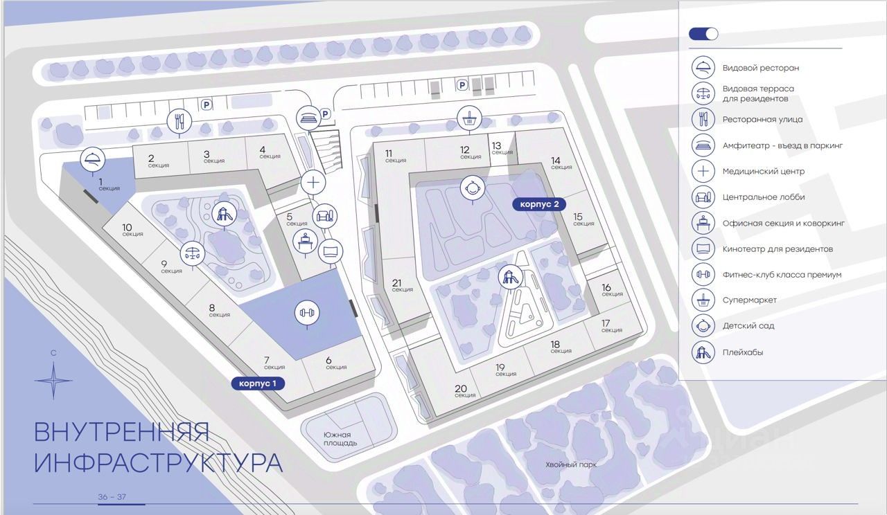 О ЖИЛОМ КОМПЛЕКСЕ: Проект Glorax Aura Vasileostrovsky представляет собой квартал в сегменте премиум. Над архитектурной концепцией объекта работал голландский консорциум КСАР+Orange Architects совместно с петербургским бюро А.Лен. Дома выполнены в стиле хаотизм и украшены башнями заостренными золотыми верхушками с изогнутой неправильной формой. На территории комплекса выполнены озеленение и ландшафтный дизайн. В вечернее время включается подсветка деревьев. На придомовой территории спроектированы спортивные зоны с современным workout оборудованием, столы для пин-понга, детские площадки Robinia, зоны для пикника, фонтан на Южной площади, амфитеатр у центральной площади и целая ресторанная улица. Только для резидентов Glorax Aura Vasileostrovsky работает небольшой приватный кинотеатр. В первом корпусе расположится двухэтажный фитнес-клуб класса премиум общей площадью более 3000 квадратных метров с эксплуатируемой кровлей. Из панорамных окон фитнес-зала откроются вдохновляющие виды на Финский залив и хвойный парк, а главным акцентом является 25-ти метровый бассейн с лаунж-зонами. На территории проекта находится свой детский сад. Для владельцев автомобилей предусмотрены стоянка и подземный паркинг. ЖК Glorax Aura Vasileostrovsky находится в Василеостровском районе. Инфраструктура района развита: рядом находится школа и детский сад, работают поликлиника, спорткомплекс, гипермаркеты Лента и Перекресток, аквапарк Вотервиль. Метро Приморская находится в 10 минутах