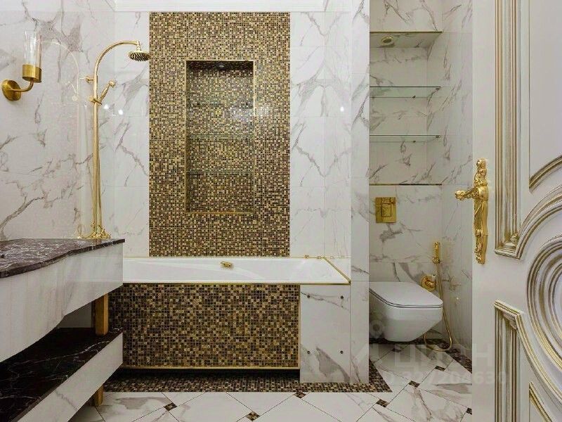 Мраморные полы, лепнина ручной работы и золотая отделка придают помещению исключительную роскошь и элегантность.