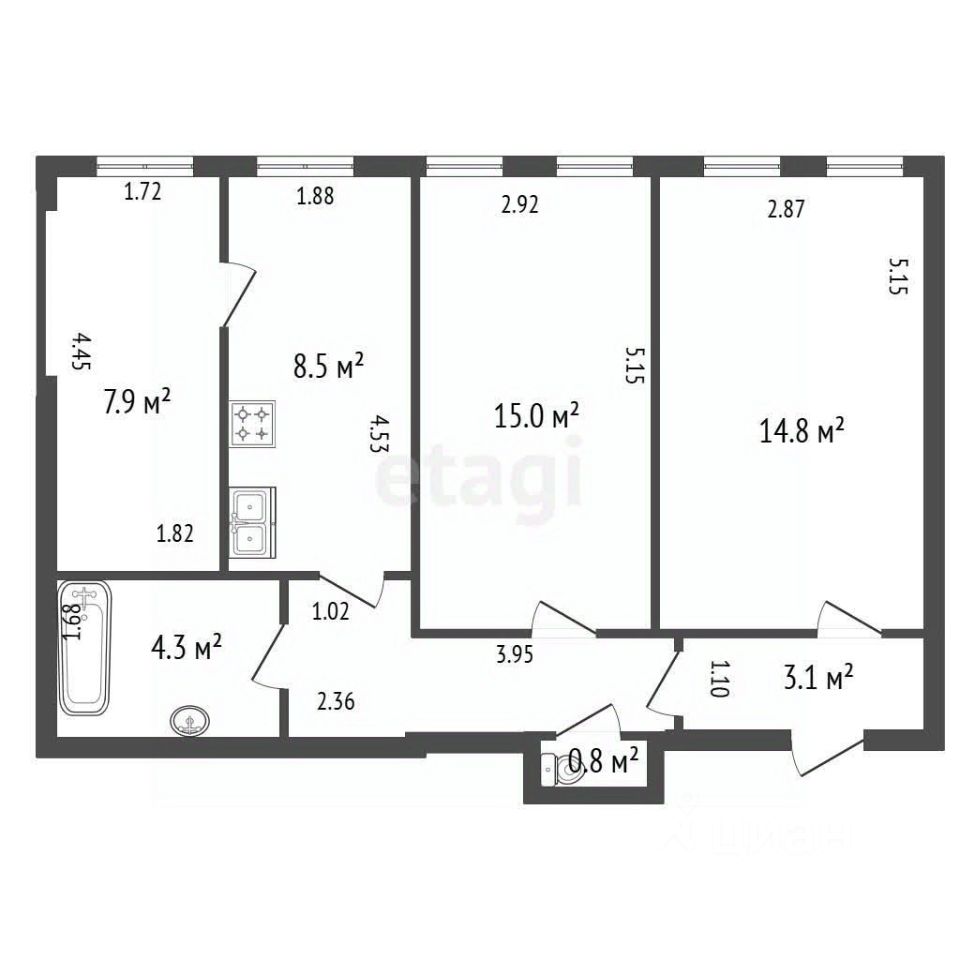 две изолированные комнаты по 15 м²