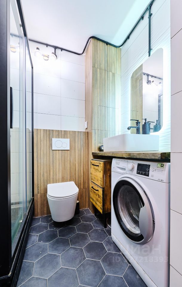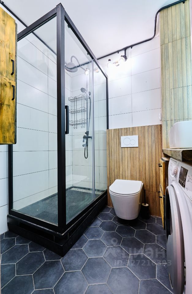 - Совмещённый санузел с душевой кабинкой и местом для стиральной машины.
