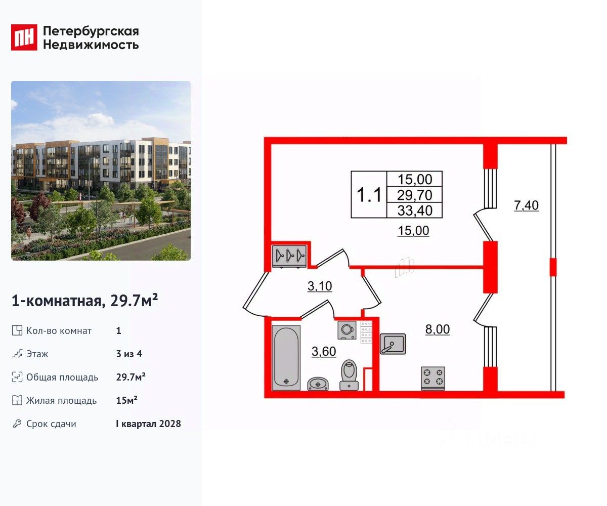 Общая площадь29,7 м2