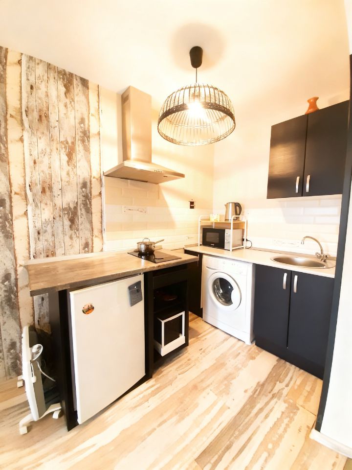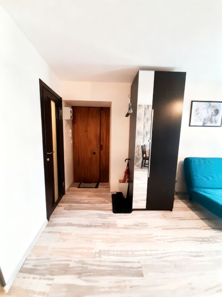 Студия общей площадью 21 м². Квартира отдельная, НЕ коммунальная! Для вашего удобства : посуда, микровалновая печь, электрический чайник, варочная поверхность, стиральная машина, холодильник, вытяжка, гладильная доска, сушилка для белья, фен, на первое время постельное белье, интернет.