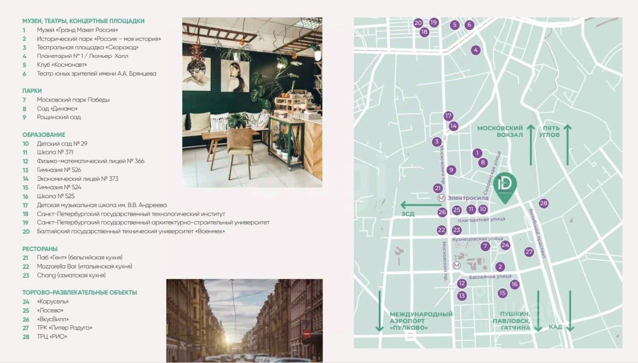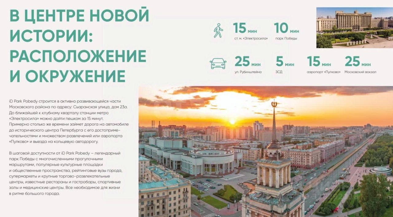 ЛОКАЦИЯ: Отличная транспортная доступность: - станция метро ''Электросила'' находится в 15 минутах пешком, - рядом Московский пр, Витебский пр., - в трех минутах выезд на ЗСД, да и на КАД недалеко! - в 10 минутах на автомобиле от Невского проспекта! - В 10 минутах пешком крупные ТЦ ''Питер Радуга'' и ''РИО''. Будьте в центре, в ритме, в тренде!