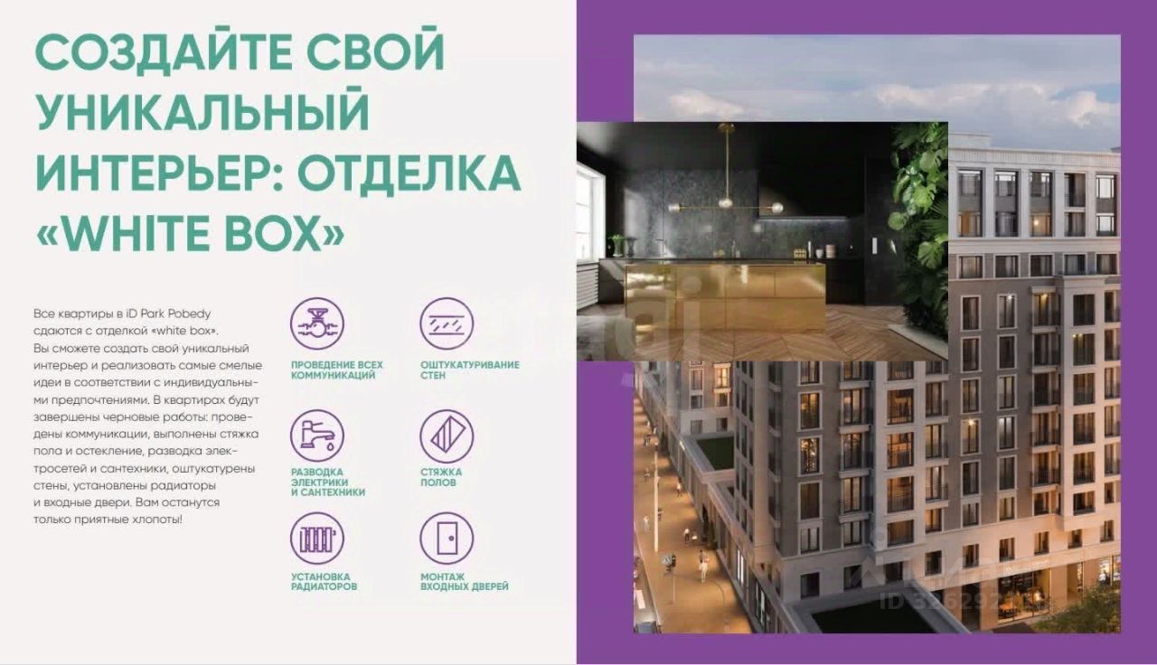 Отделка ''white box''. Вы сможете создать свой уникальный интерьер и реализовать самые смелые идеи в соответствии с индивидуальными предпочтениями.