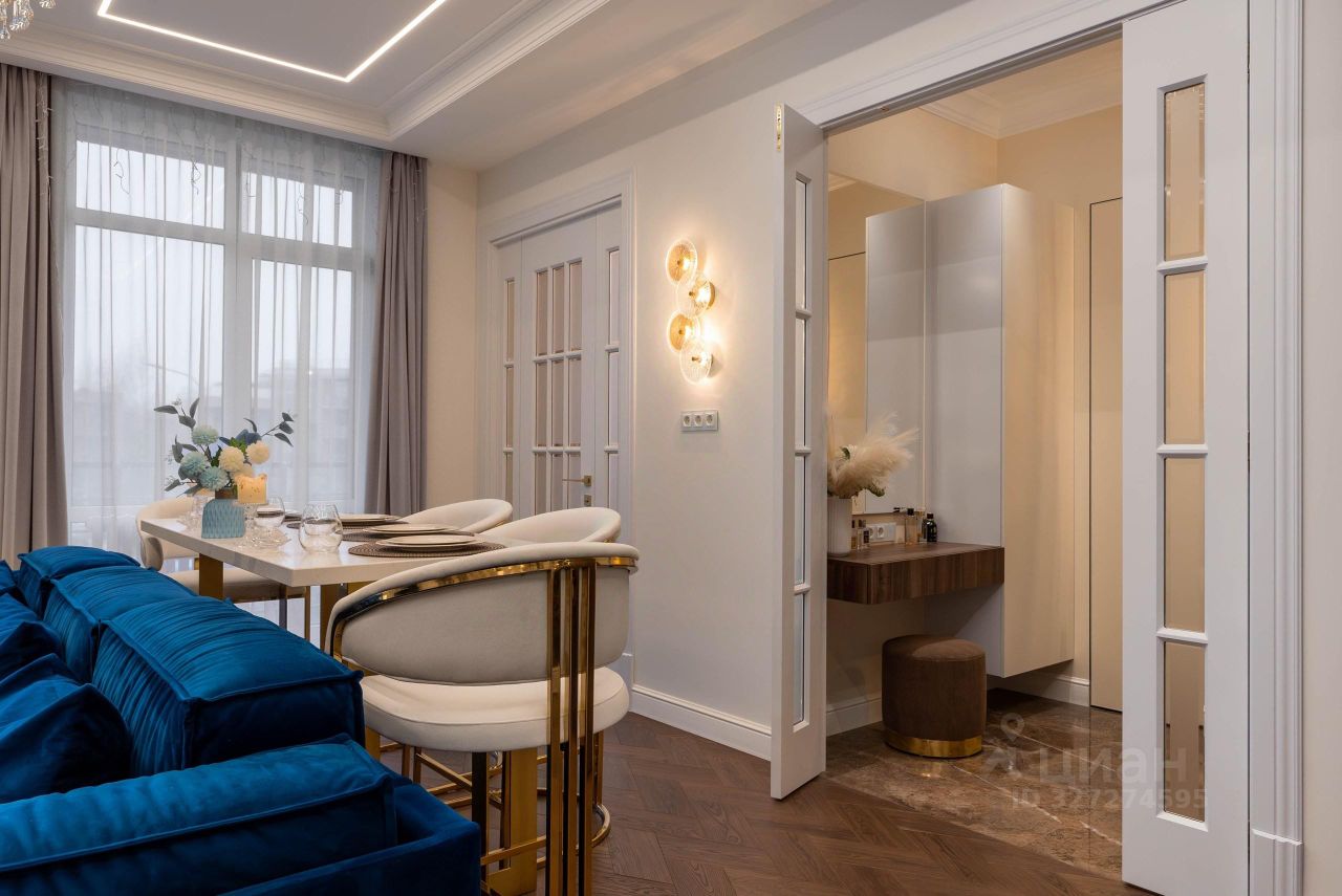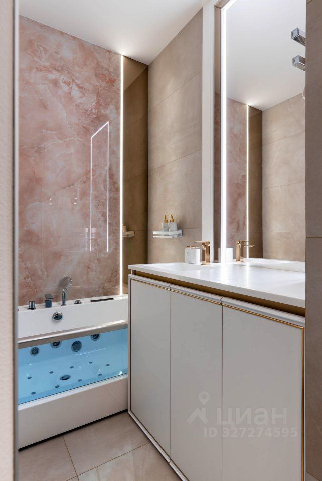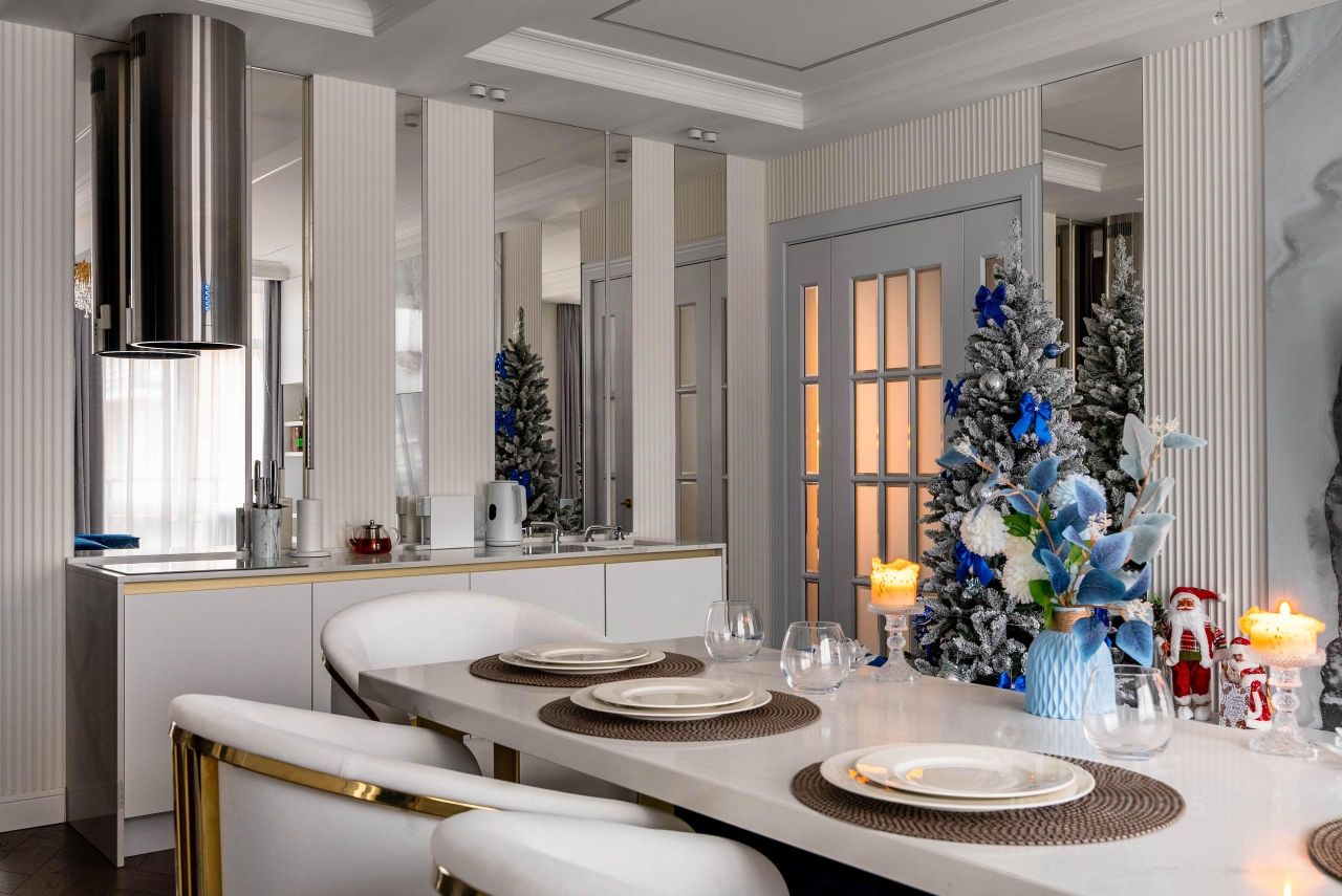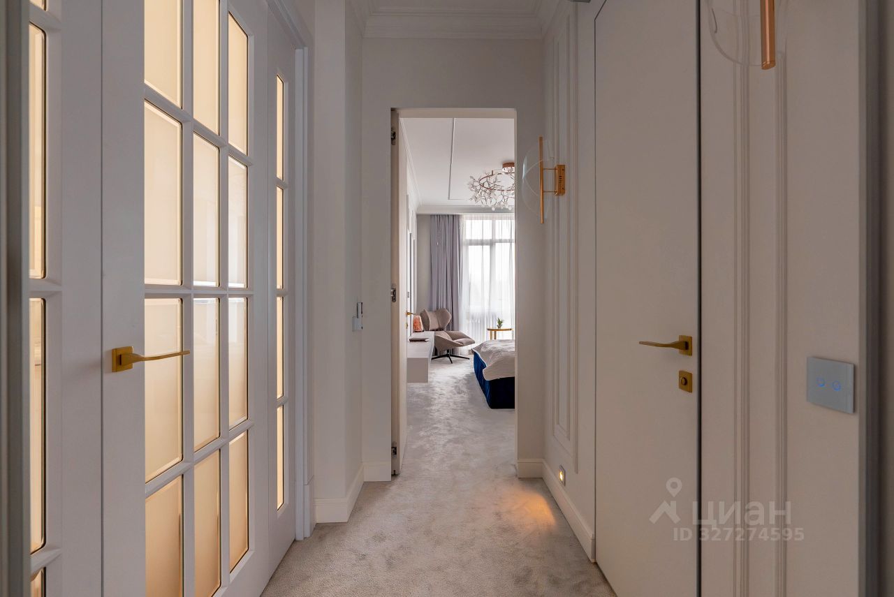 Квартира оборудована современной инженерной системой: Автоматические карнизы в спальне позволяют управлять световым потоком.Смарт-замок с удаленным управлением обеспечивает дополнительную безопасность.Сенсорные выключатели для удобного контроля освещения.Климатическая система поддерживает оптимальную температуру в любое время года.Теплые полы обеспечивают комфорт в холодный сезон.Дополнительная шумоизоляция потолков снижает уровень внешних шумов. Кухня и ванные комнаты Кухня оборудована столешницами из натурального камня, посудомоечной машиной на 12 комплектов, индукционной плитой и системой очистки воды. Ванные комнаты оформлены в сдержанной цветовой гамме с использованием мрамора. Одна из ванных оборудована гидромассажной ванной с дополнительными опциями.