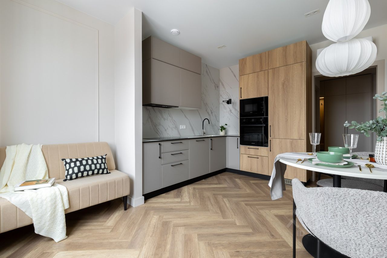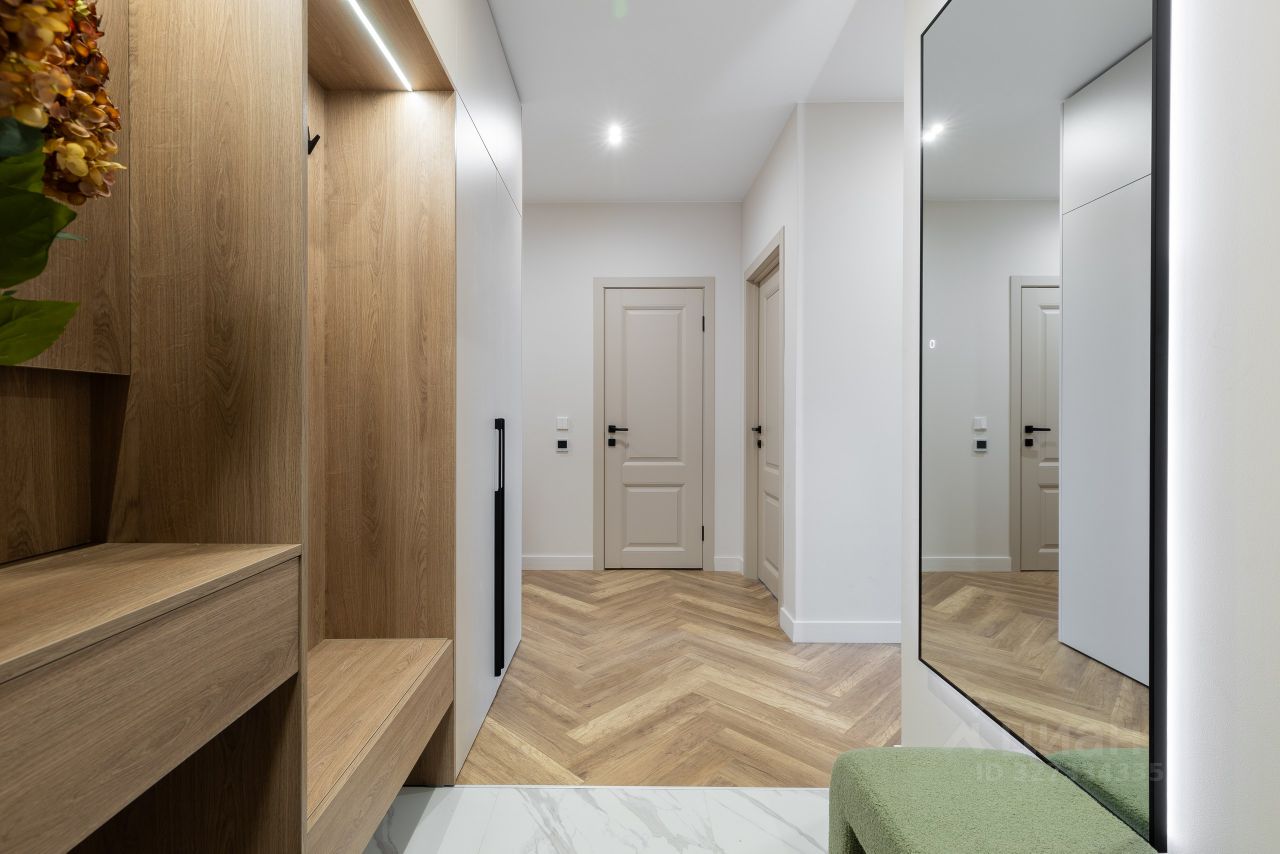 ВИДОВАЯ 2КК В ЖК ГАЛАКТИКА. 3 МЕТРО В ПЕШЕЙ ДОСТУПНОСТИ. Продаётся 2кк квартира в Адмиралтейском районе в доме 2023 года постройки площадью 64,5 м.кв. + лоджия 3,6 кв.м.: - комфортная кухня 14,0 м.кв., - спальня с гардеробной 15,7 м.кв. с выходом на лоджию, - вторая комната 15,5 м.кв с гардеробной, - большой санузел с ванной 3,7 м.кв., - санузел 2,3 м.кв., - постирочная 2,1 м.кв., - просторная и функциональная прихожая 11,2 м.кв. Итого 68,1 м.кв. полезной площади. Состояние квартиры полностью соответствует фотографиям. Большое количество мест хранения все сделаны на заказ. Кухня со встроенной техникой. Все это остается новым владельцам. Квартира очень солнечная, благодаря высокому 17 этажу имеет прекрасные видовые характеристики. Окна кухни и комнаты смотрят на восток, все восходы Ваши), а вечером приятная подсветка ночного города. Окна спальни выходят на запад вид на перспективу города, видны Газпром арена и Лахта центр. У квартиры двухсторонняя планировка, супер проветривание, установлены кондиционеры. Ремонт закончен в феврале 2026 года. Все коммуникации сделаны по уму, и не будут ребусом для нового собственника. Есть фото скрытых работ, ремонт делался с проверенной бригадой, есть все схемы прокладки от электрики до сантехники. Высота потолков 2,75. На этаже всего 4 квартиры. Сам дом и мопы в отличном состояние. Благодаря тому, что в доме мало студий и достаточно большие метражи квартир нет очередей в лифтах и излишнего износа самого дома и общедомового имущества. Спуск в паркинг через лифт, двор закрытый с зоной отдыха, видеонаблюдение на этажах, лифтах и по периметру, круглосуточная охрана. Оборудованное помещение для колясок и велосипедов, безбарьерная среда всего комплекса. Дома в комплексе расположены друг от друга на разумном расстоянии, широкие бульвары, предусмотрены не только внутри дворовые зоны отдыха и детские площадки, но и общественные. Адекватная УК от застройщика, реагируют на заявки своевременно, все работы делают официально с чеком. ИНФРАСТРУКТУРА Данная локация уже сформировалась - вся торговая и социальная инфраструктуры находятся в пешей доступности. Современные школы и детские сады в 5 минутах ходьбы. ТЦ Vokzal 1853, Лента, магазины у дома (все первые этажи комплекса коммерция). Метро: м. Балтийский вокзал 15 мин пешком, м. Фрунзенская 14 минут пешком, м. Московские ворота 20 минут пешком. ДОКУМЕНТЫ 1 взрослый собственник будет лично на сделке, покупал за наличные у застройщика, без обременений, материнский капитал и тп не использовался. Возраст средний, не единственное жилье.