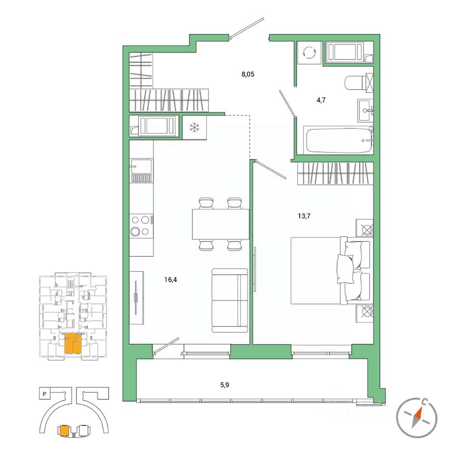 продам 1-к, Реки Каменки набережная, 1113 744 580 ₽