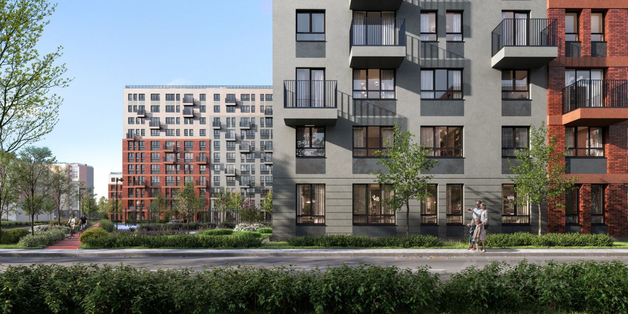 Благоустройство и архитектура Дворы в квартале — приватные, без машин, с зелеными островками и зонами для отдыха. Вокруг школы проложен зеленый бульвар с велодорожкой. Дома высотой 11 этажей отличаются стильным фасадом в теплых оттенках с французскими балконами. В парадных — светлые лобби в европейском стиле с безбарьерной средой.