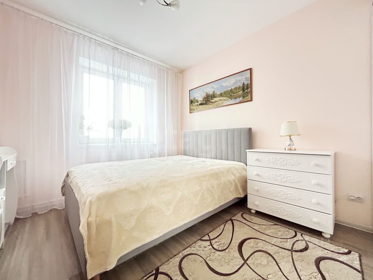 В квартире выполнен современный ремонт: Теплые обои и ламинат создают домашний уют. В санузеле - кафель и удобная душевая кабина. Большая кухня-гостиная 20 кв.м. , комната -11 кв., выход на застекленный балкон прямо из кухни. Приятный бонус: при продаже остается не только кухонный гарнитур с техникой, но и мягкий диван с вместительным шкафом-купе.