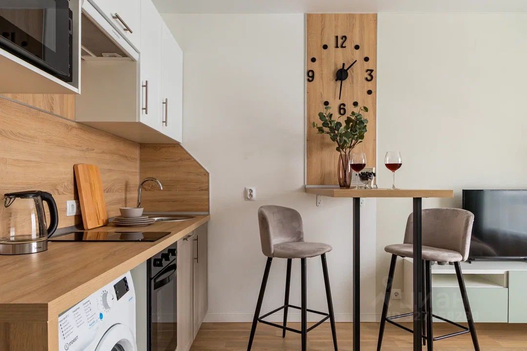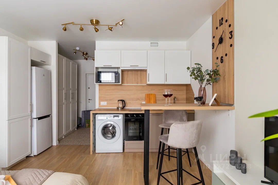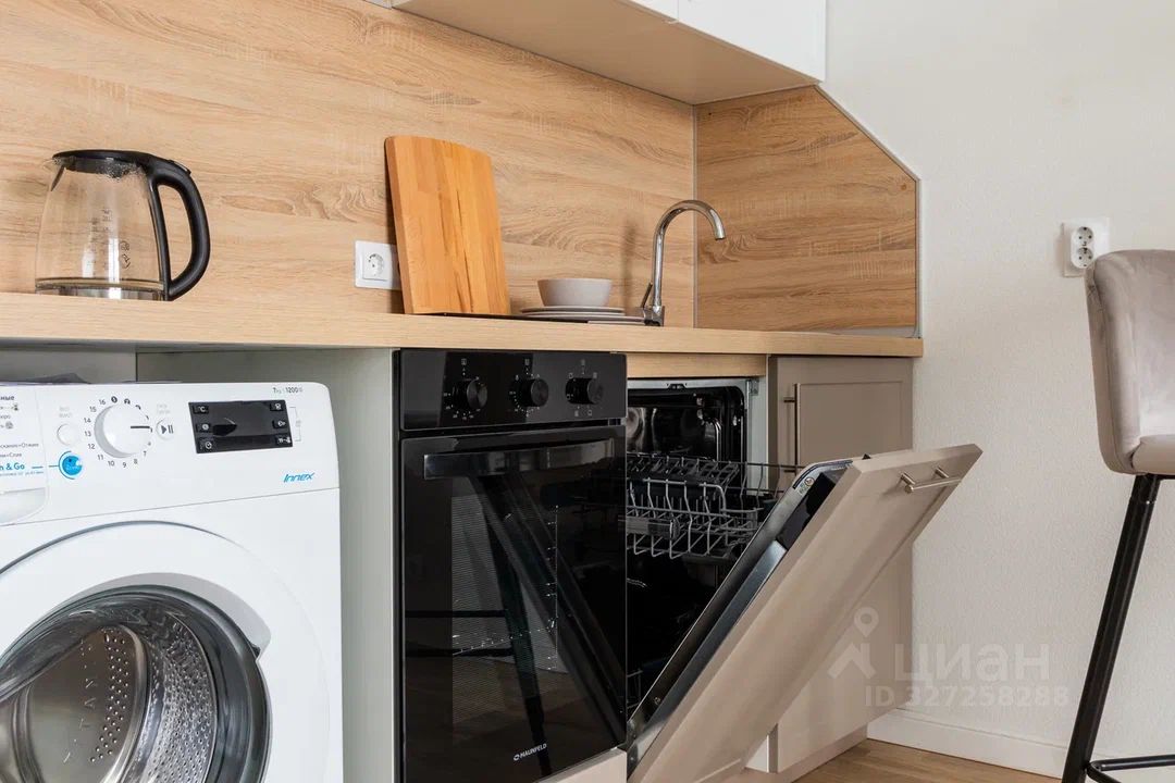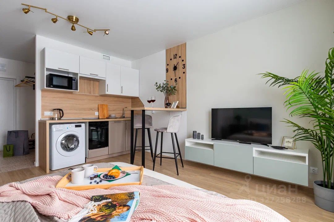 О КВАРТИРЕ: Площадь: 24 кв.м. Высота потолков: 2,7 м. В квартире сделан дизайнерский ремонт, полностью укомплектована мебелью и техникой: стиральная и посудомоечная машины, духовой шкаф и варочная поверхность, холодильник и телевизор), можно сразу заехать и жить.