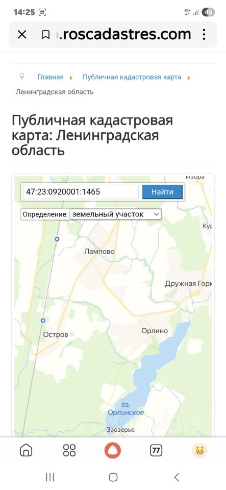 Продам уч.11 сот ИЖС с бревенчатой баней 5х3м,установлена чугунная печь(Гефест гром),сделан слив для воды, обшита и утеплена, сделан фундамент под веранду(есть материал для веранды). Участок огорожен профлистом и толстой рабицей ,сделан заезд для авто с откатными воротами и калиткой для входа. Электричество 15Квт от Ленэнерго, газ по границе участка,сделана скважина.Участок разработан,ухожен,сделаны девять грядок,посажены плодовые деревья и кустарники,есть дрова для печи.Развита инфраструктура,в шаговой доступности,магазины:Пятерочка,Магнит,Почта и Озон,детсад,Баня,автобусная остановка,амбулатория,оз.Орлинское с песчаными пляжами,лес грибы,ягоды.Ж/Д Лампово 10 мин.пешком,хорошее сообщение с Спб.Документы готовы,проведено межевание,кад.47:23:0920001:1465.Ц.2999 т.р Небольшой торг.