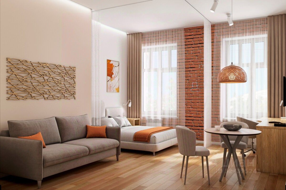 Удобная, классическая, функциональная европланировка. Общая площадь апартаментов - 24.9 м², высота потолка 3 м.