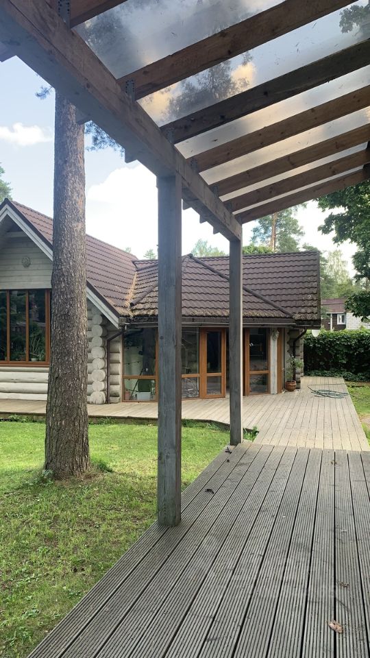 Один дом : 2009 года постройки, бревно D 40-55 см. Площадь 90 м2, гостинная с камином и кухней, русская баня и каменная печь, комната для спортзала или свободного назначения, в мансарде спальня, остекленная теплая входная группа. Отопление: оборудован геотермальным насосом Buderus.