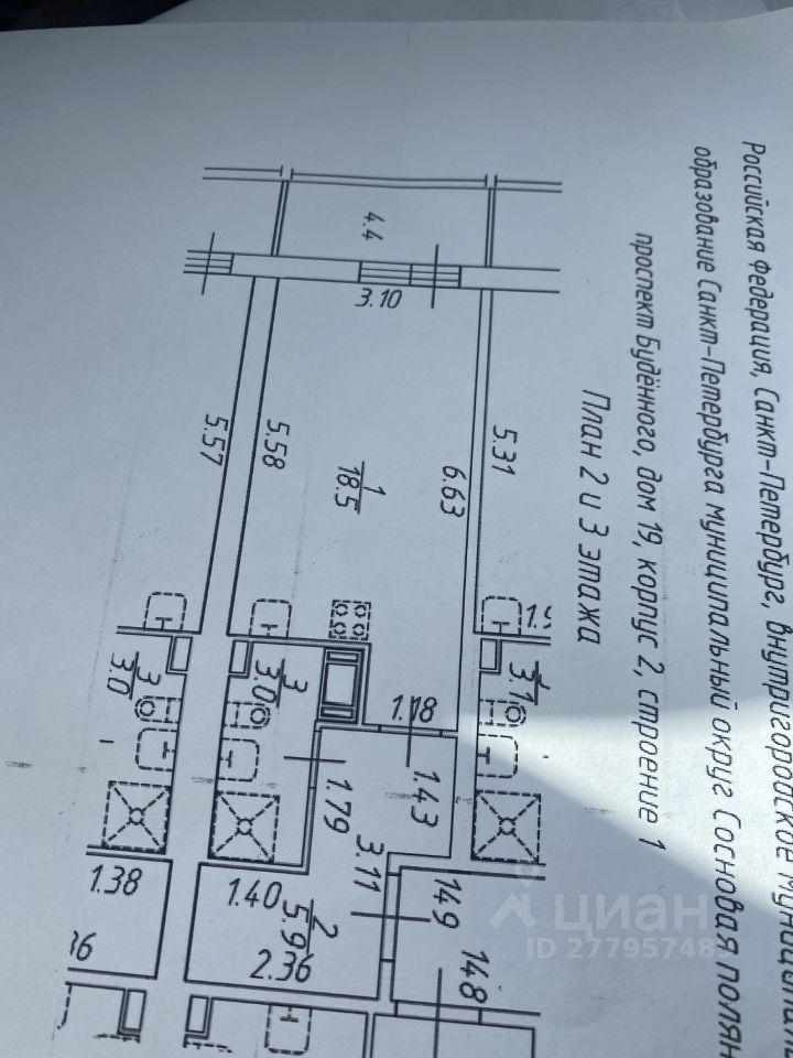 Жилая площадь18,5 м2