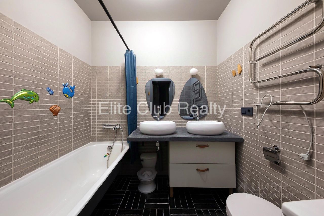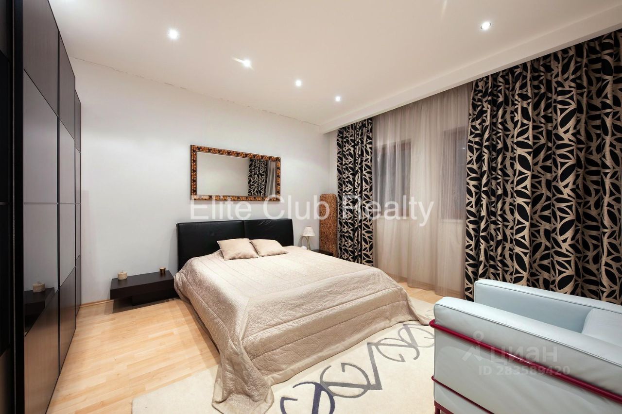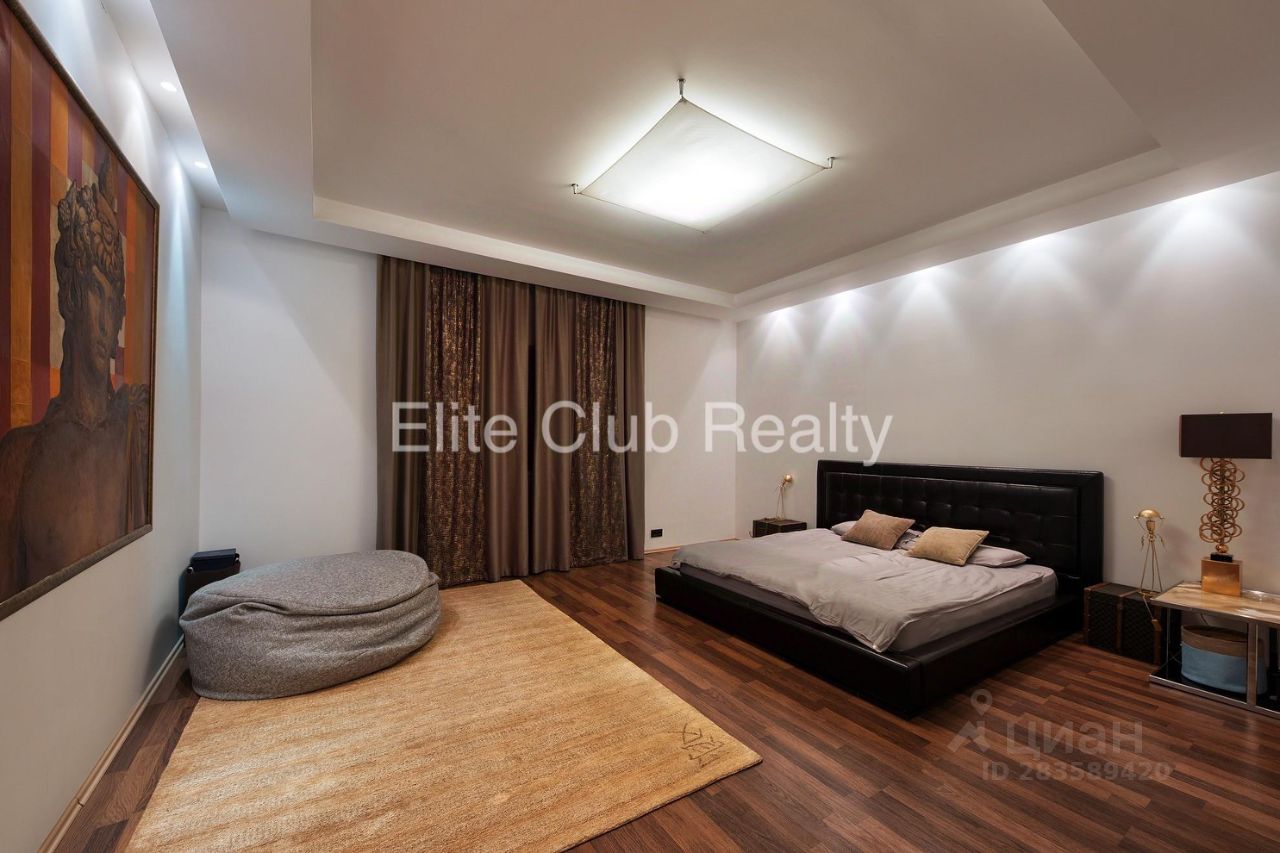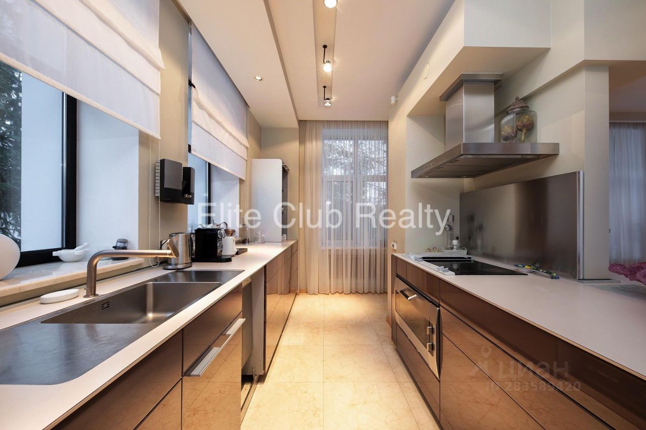 Основной дом имеет 2 этажа и цоколь, площадь дома 440 м2. Первый этаж представлен уютной гостиной. Рядом с гостиной расположена зона столовой и кухни в современном стиле. Также на первом этаже кабинет со вторым светом и камином. На втором этаже запроектированы мастер-спальня с ванной комнатой и гардеробной, большая детская комната со стеной для творчества детей. На цокольном этаже в темных тонах оборудован кинозал, а также имеется комната для хранения и спа-зона с купелью. Год постройки дома - 2006, выполнен из кирпича.