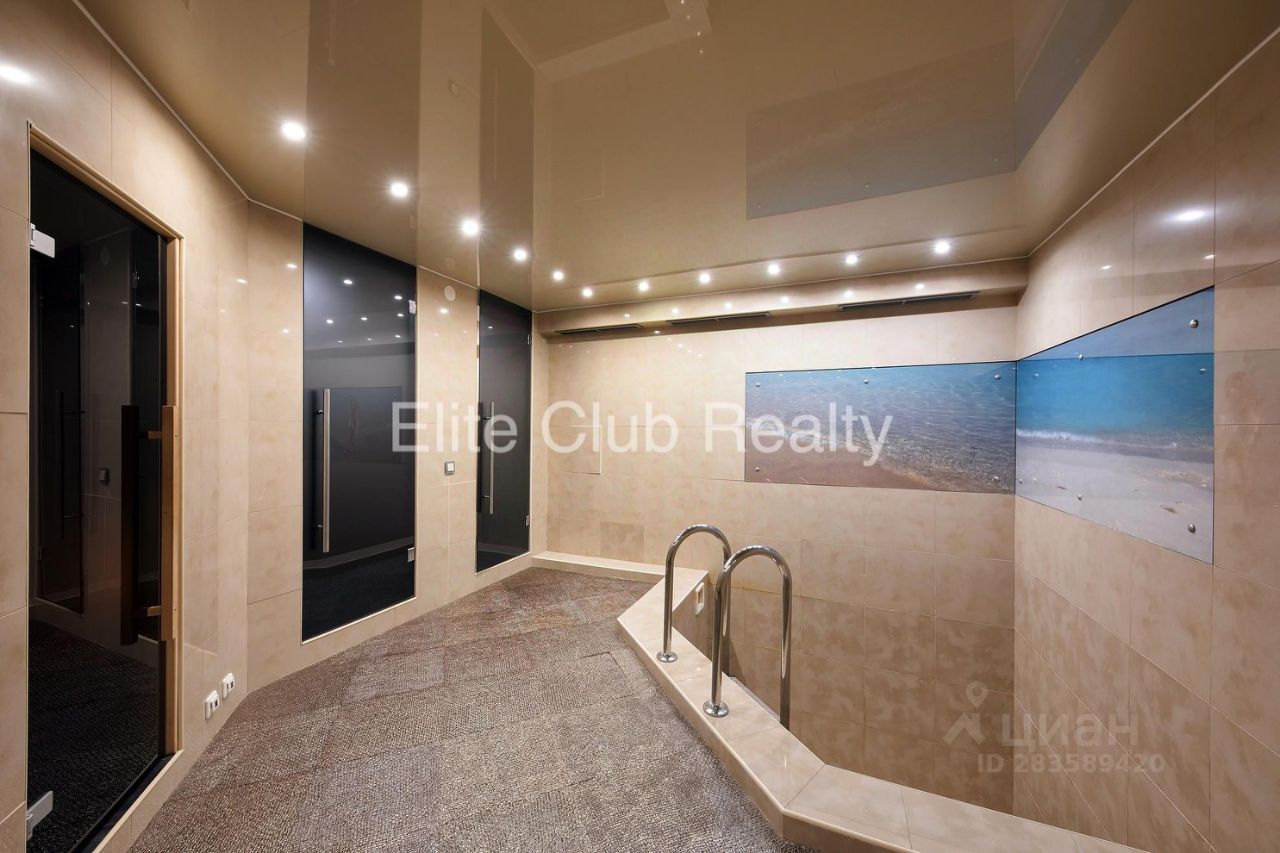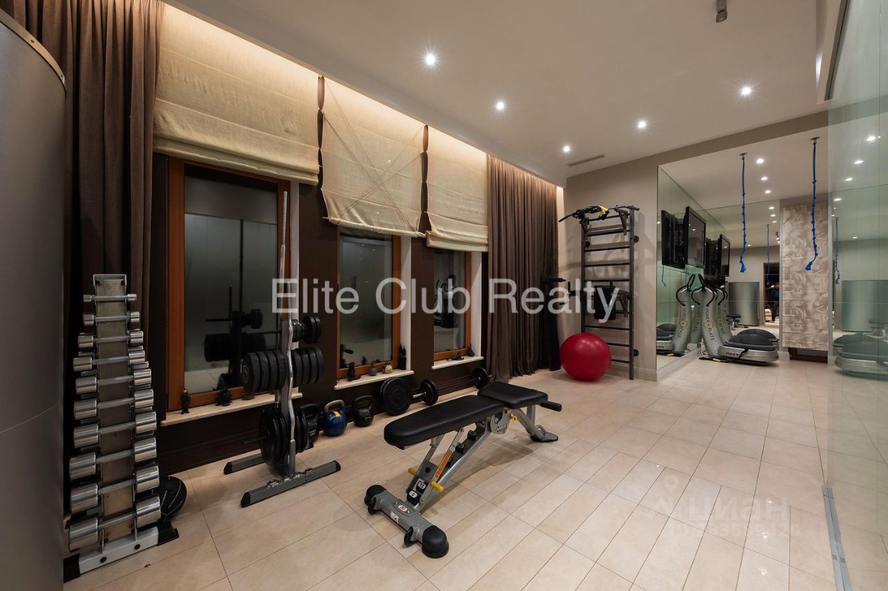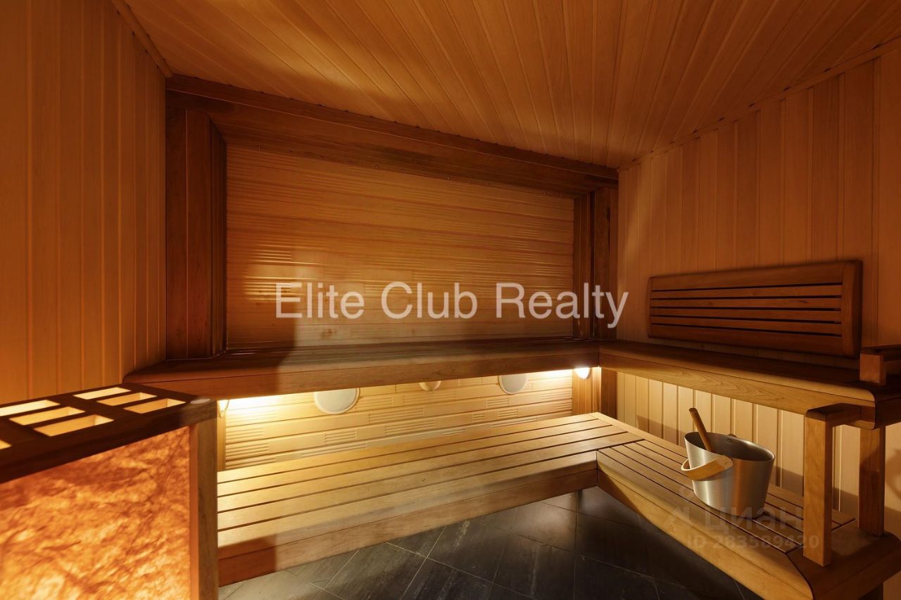 Рядом с основным домом расположился спа-комплекс с комнатой отдыха с панорамным остеклением, акцентом которой является камин, вокруг которого можно присесть и наслаждаться отдыхом. Далее идет зона для спорта с тренажерами, сауна и хамам, криосауна.
