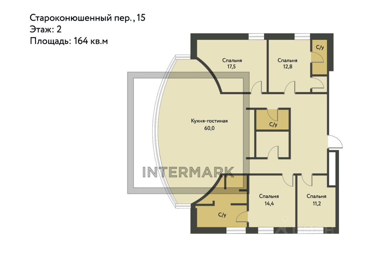 ID 59574: Эксклюзив. Только в Intermark. ЖК Староконюшенный 15. Квартира 164 м² с 3 спальнями и кабинетом в клубном доме на Арбате