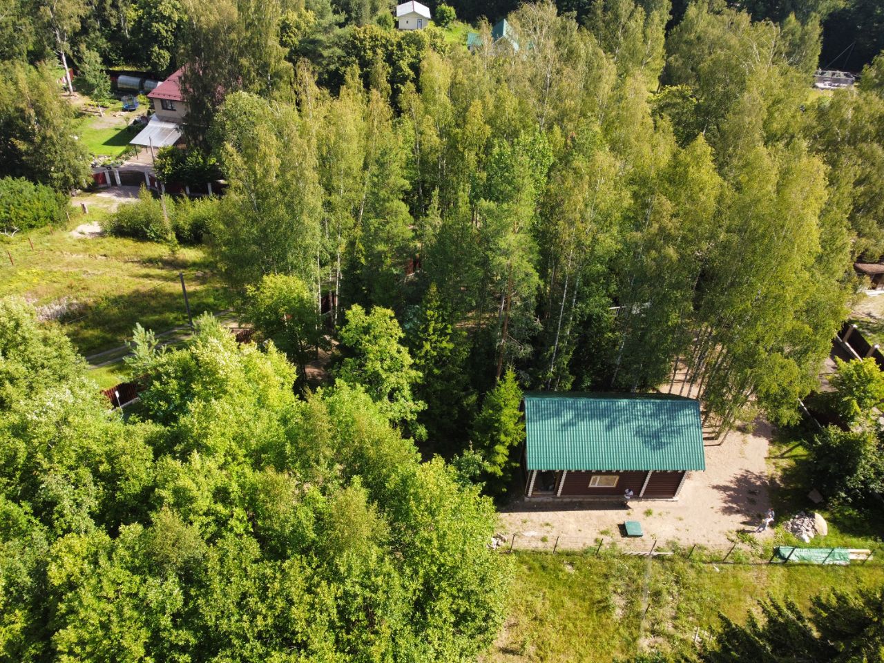 На сухом, разноуровневом участке расположены 2 одинаковых дома общей площадью 218.2 кв.м с открытой террасой. Один из домов полностью готов к круглогодичному проживанию: отопление - теплые полы, хорошая сантехника, мебель из массива сосны, вся необходимая техника.