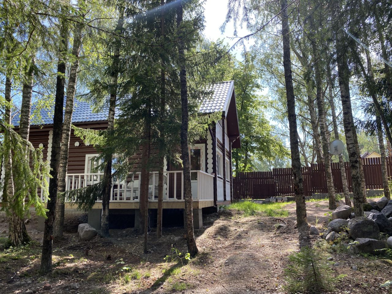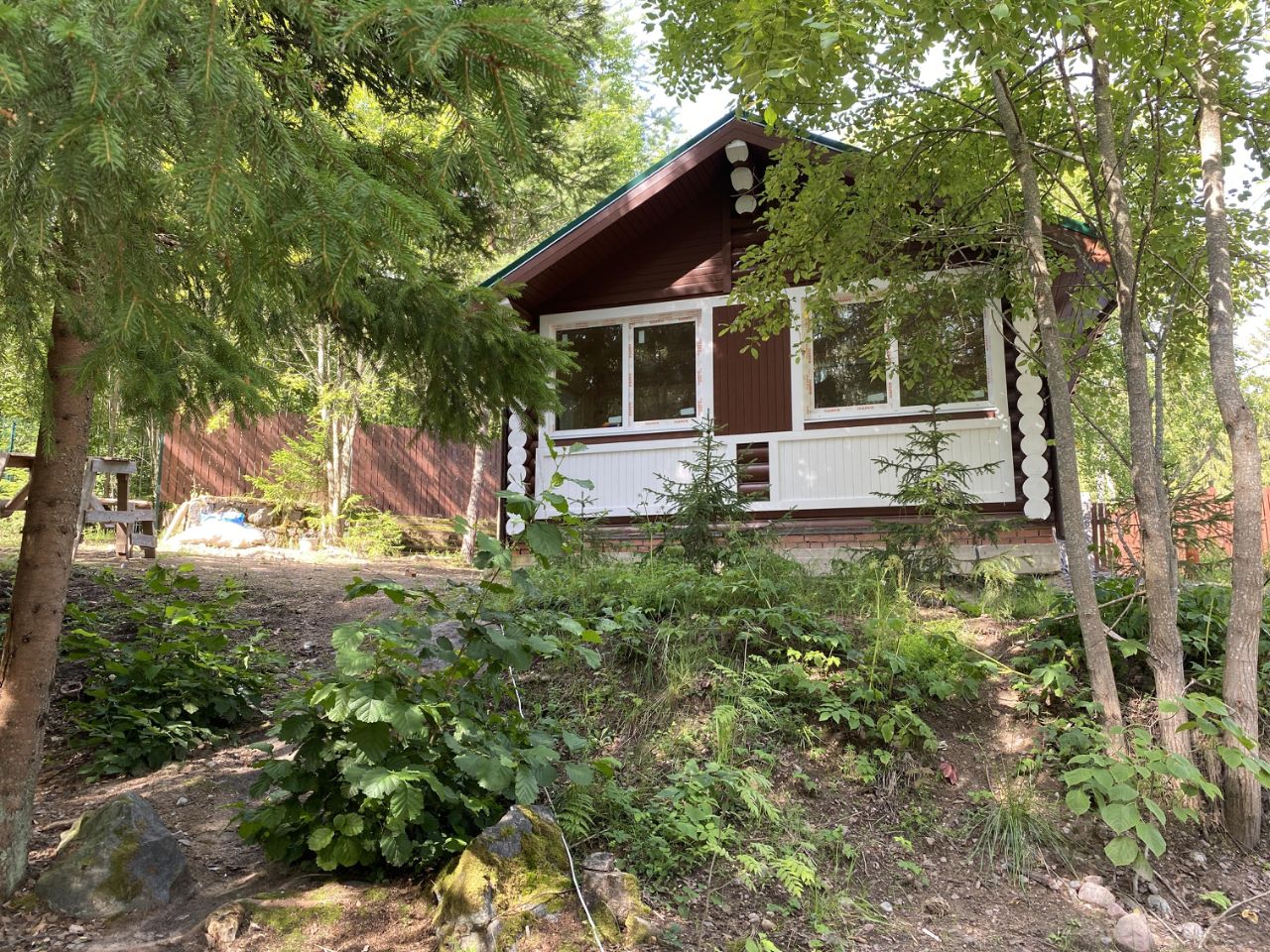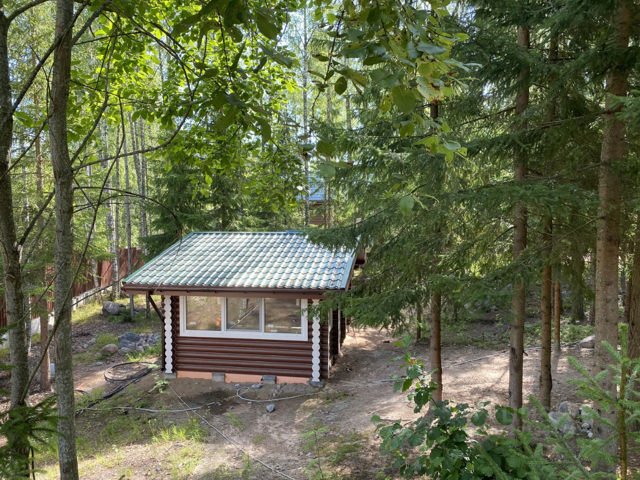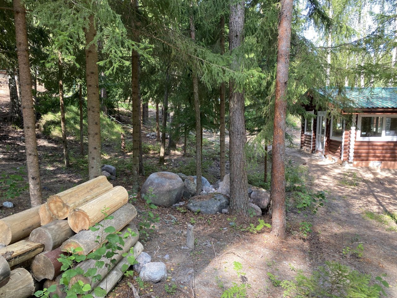 В продаже 2 новых бревенчатых дома, баня и утепленная беседка на участке 20 соток (кадастровый номер 47:01:0401006:121) в живописном месте на 1-й линии Финского залива.