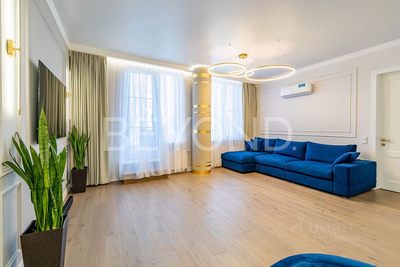Квартира с новой дизайнерской отделкой без следом амортизации общей площадью 124 кв. м с двумя спальнями расположена на 3 этаже и обладает рядом неоспоримых преимуществ. Это и благоустроенная просторная терраса 54 кв. м вымощенная палубной доской, и высокий потолок 3м 10 см, и вид из гостиной, мастер-спальни и террасы на перспективу р. Ждановки, уходящей в сторону центра города и графичный мост Бетанкура. Вид из детской и второго санузла в уютный благоустроенный двор. Огромные окна на южную и восточную стороны света все эти характеристики дают возможность максимального освещения и наполняют пространство воздухом. Планировка с двумя спальнями, гардеробной, тремя санузлами и просторной кухней-гостиной 50 кв.м позволит будущим хозяевам жить с максимальным уровнем комфорта.
