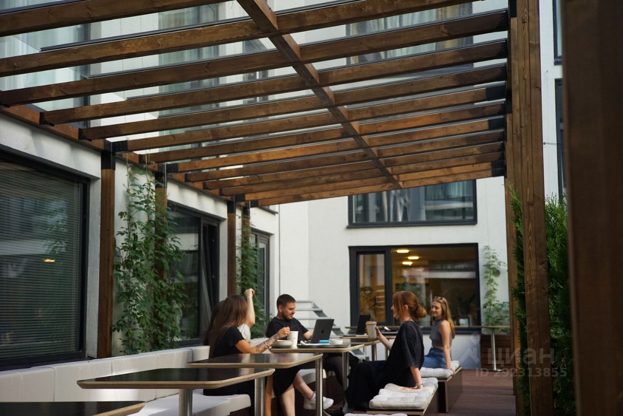 В здании располагаются салоны красоты, массажный салон, магазины продуктов, кулинария, пекарня, фуд-корт BACKYARD со множеством небольших ресторанов, собственная поземная парковка.