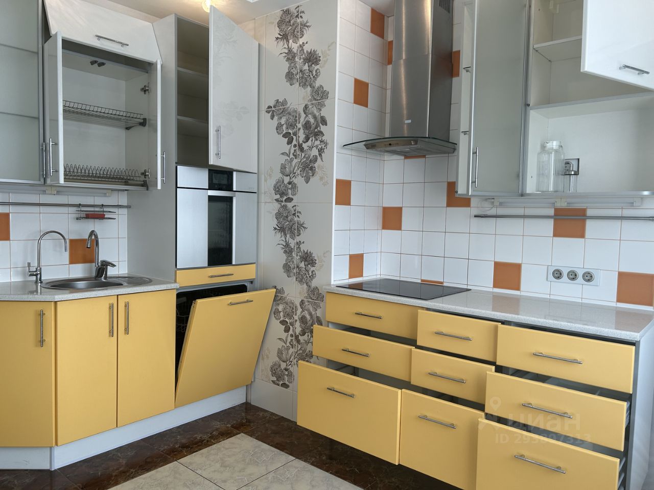 * Кухня - 10,5 м2 с мебелью. - Доводчики Blum. - Столешница и подоконник - кварцевый агломерат. - Теплый пол. ИЗ ТЕХНИКИ ОСТАЕТСЯ: 1-вытяжка Кrona (тихая), 2-духовой шкаф Gorenje. для Посудомоечной машины - есть ниша и все подключения, стандартный размер