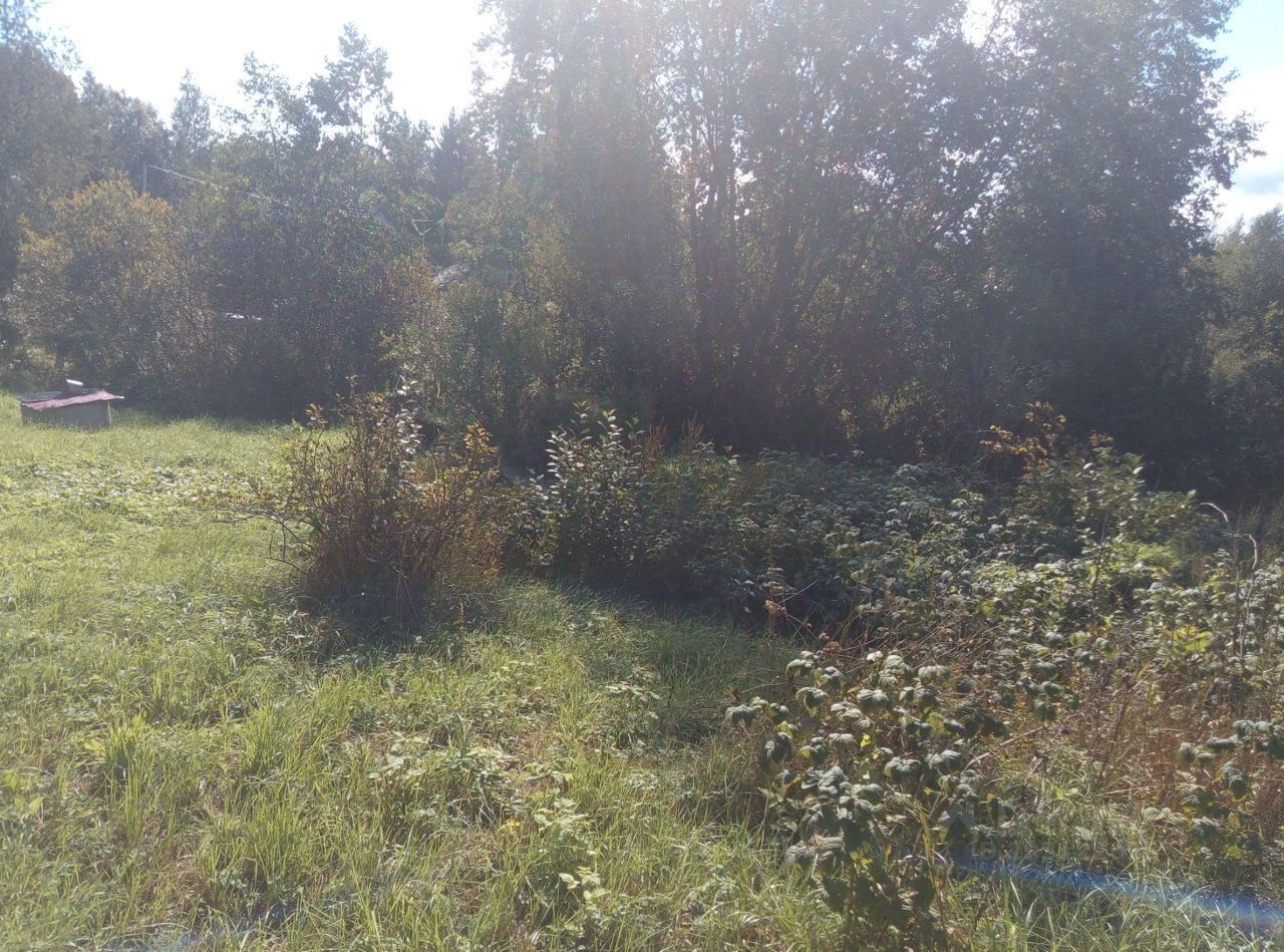 Оседи с одной стороны, на участке есть яблони, сливы, вишня, кусты малины и смородины, колодец для полива. Кусок леса по краю которого протекает ручей. Участок состоит из двух. Частей. Один-основной 12,4 сот. На фото, второй-3,6 сот. На другой стороне улицы.