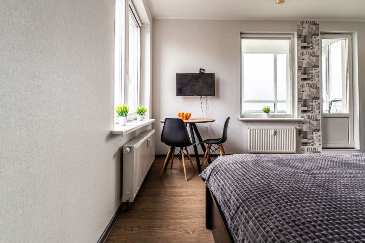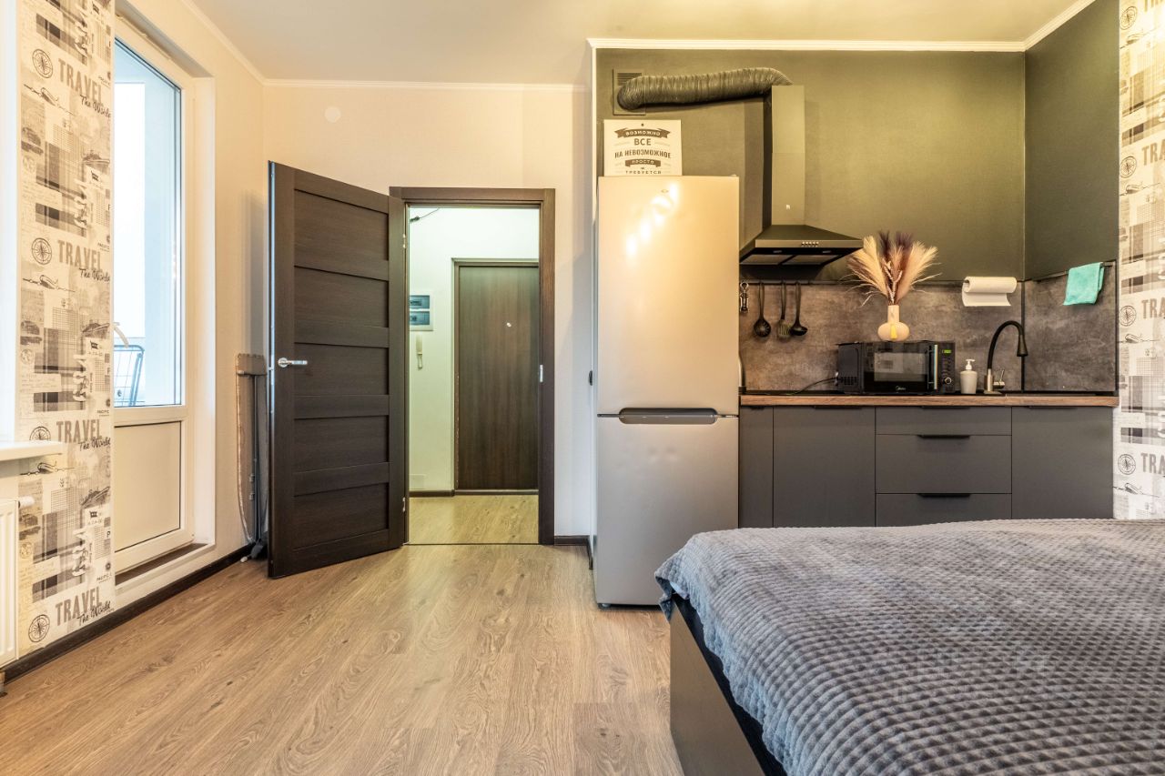 Сдается уютная квартира-студия в Санкт-Петербурге на Комендантском проспекте 66 к1. Общая площадь - 25 кв. м, жилая - 17 кв. м. Квартира расположена на 18 этаже 25-этажного дома. Из окон открывается вид на парк, что обеспечит вам спокойствие и уединение. Сдается на длительный срок, возможна аренда от 1 месяца(доп плата) Предпочтительно писать, нахожусь (в роуминге)