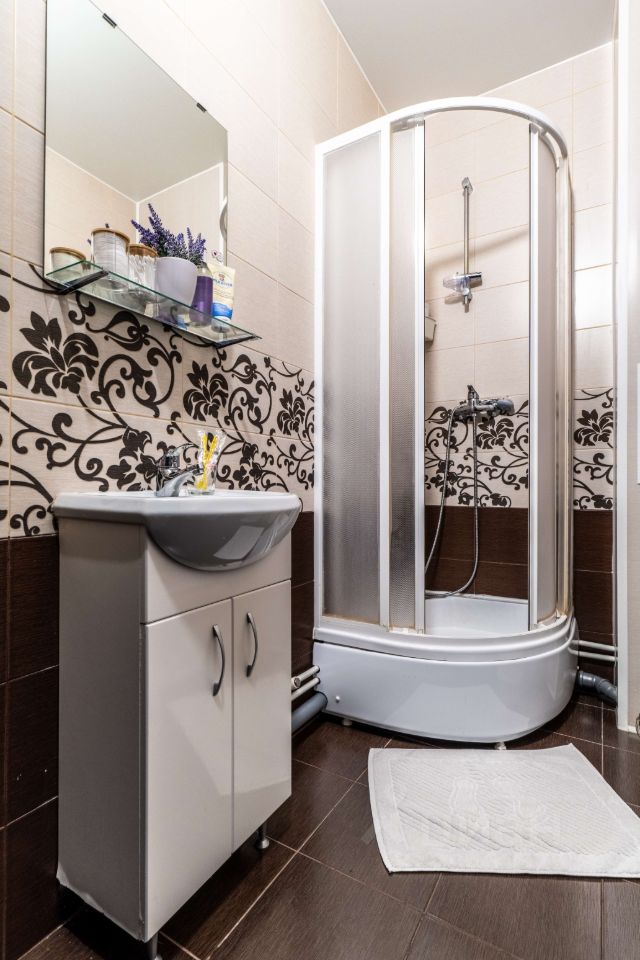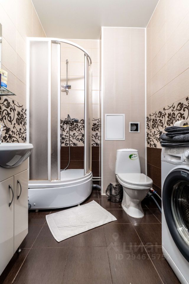 В квартире есть косметический ремонт, благодаря чему она выглядит свежо и современно. Пространство оптимально организовано: есть мебель в комнате и на кухне, поэтому можно сразу заехать и жить. Установлена вся необходимая техника: холодильник, телевизор и стиральная машина. Есть шкаф в комнате, нет на фото. Санузел совмещенный, оборудован душевой кабиной.