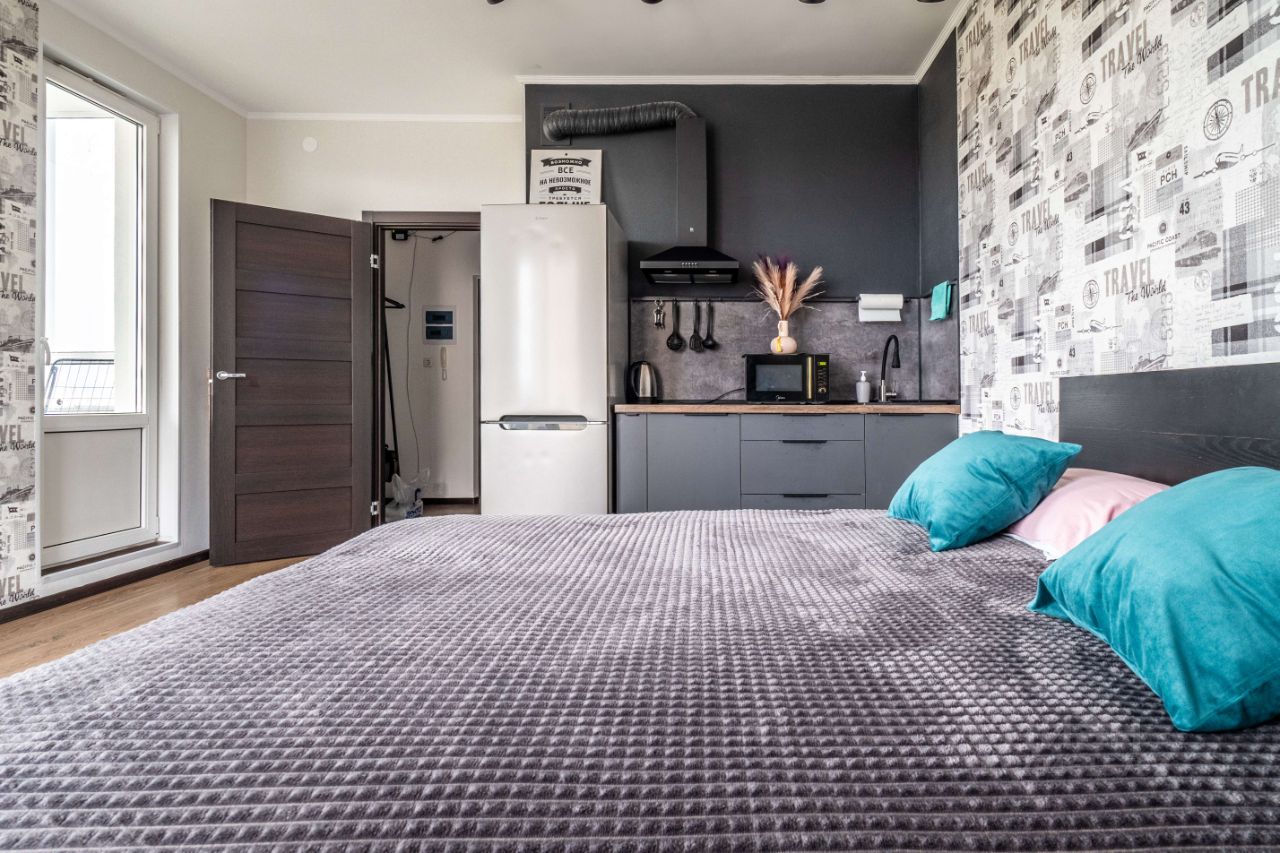В квартире есть косметический ремонт, благодаря чему она выглядит свежо и современно. Пространство оптимально организовано: есть мебель в комнате и на кухне, поэтому можно сразу заехать и жить. Установлена вся необходимая техника: холодильник, телевизор и стиральная машина. Есть шкаф в комнате, нет на фото. Санузел совмещенный, оборудован душевой кабиной. Также в квартире есть лоджия, где можно обустроить зону отдыха.