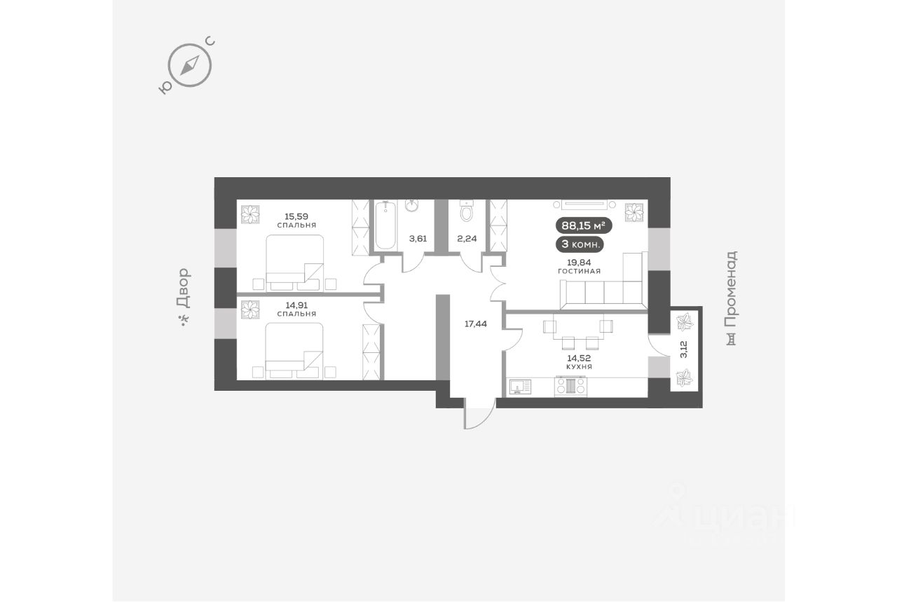 Квартира сдается в отделке ''белый куб''. Выровнены и оштукатурены стены, бетонная стяжка на полу, натяжной потолок, полная электроподготовка и установлена базовая сантехника. Вы получаете ключи от квартиры, подготовленной к воплощению ваших фантазий.