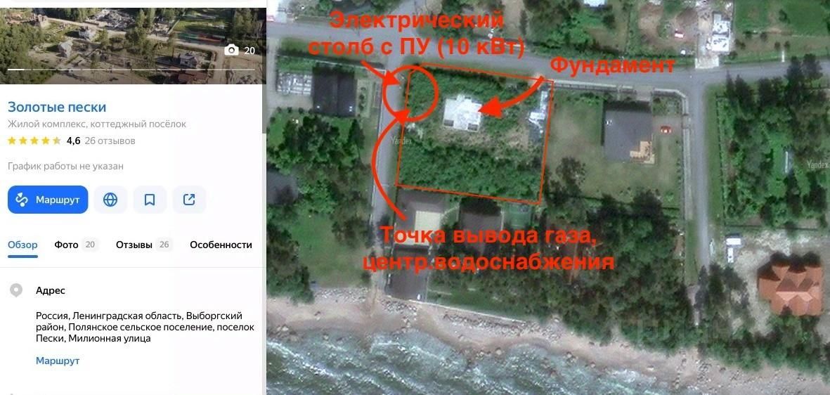Продаю участок площадью 28 соток в престижном коттеджном поселке Золотые пески. Вторая линия, открытый вид на залив. Оплачены электричество, магистральный газ, на участке заложен монолитный железобетонный фундамент. Категория земель - земли населенных пунктов.