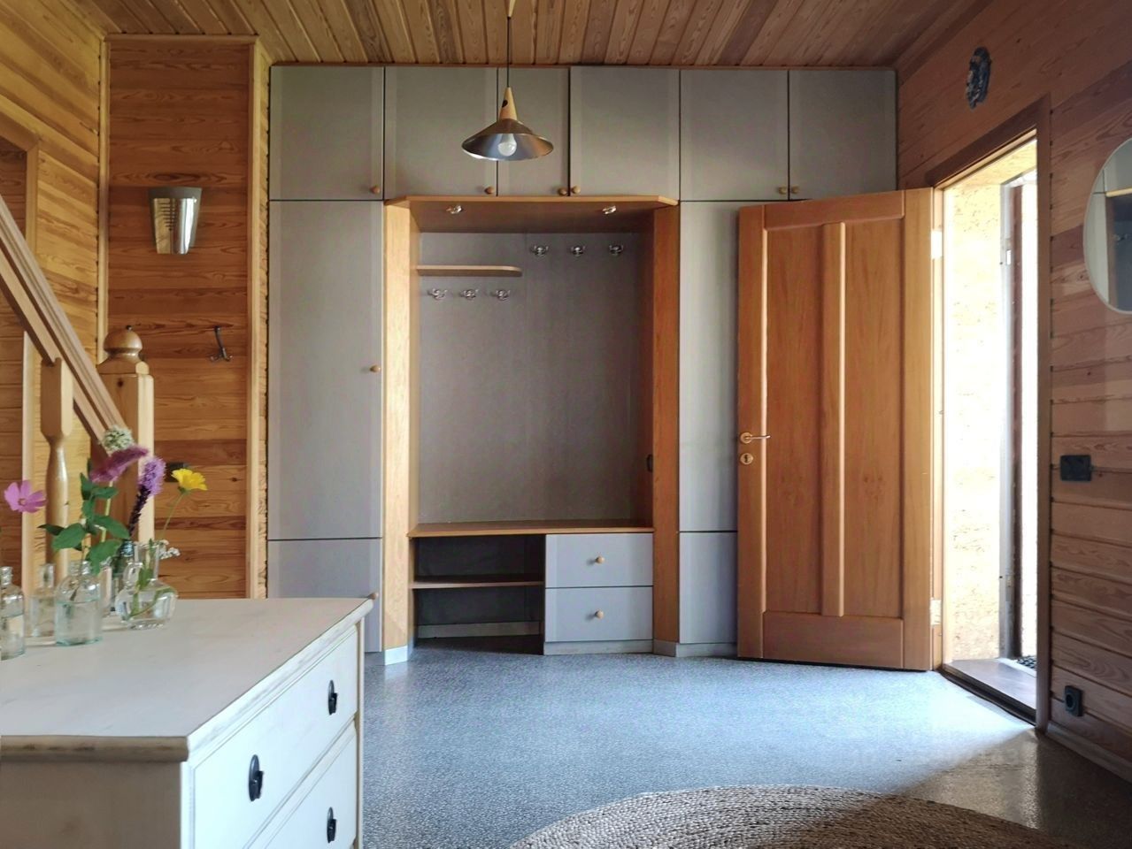 Коммуникации: трехфазное электричество 15 квт, водоснабжение, локальная канализация. Отопление и Камины: электрический котел, выполнена разводка системы водяного отопления по всему дому. Установлены 2 кассетных камина Supra (Франция) и печь. Кухня: полностью оборудована электрическая плита, вытяжка, посудомоечная машина, холодильник. Спальни: 4 комнаты на первом этаже и 2 комнаты на втором. Санузлы: ванная комната на первом этаже и санузел с душевой кабиной на втором. Первый Этаж: гостиная, кухня, 4 спальни, ванная комната, техническое помещение. Второй Этаж: большой холл с камином и бильярдным столом, комната для настольных игр, 2 спальни, ванная комната и несколько помещений для хранения. Погреб в цокольном этаже, площадь 8 кв. М. Зимой не промерзает, летом , температура не выше +14 градусов.