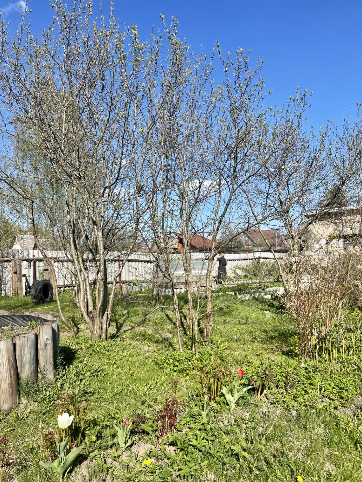 Есть сауна, погреб с заготовками, просторная кухня-гостиная, кабинет и ещё две комнаты, мастерская, веранда плодоносный участок, что там растет: 3 вида черешни, вишни 5, яблони 5, сливы 2, груши 3, алыча, смородина чёрная, красная, крыжовник, жимолость.. это то, что успела записать)