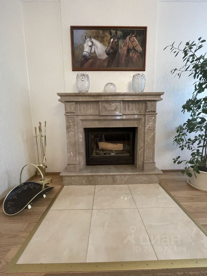 Кухня столовая и гостиная с камином.