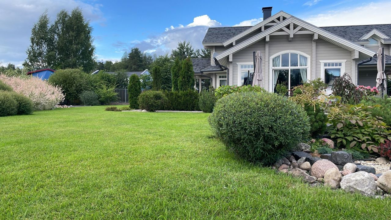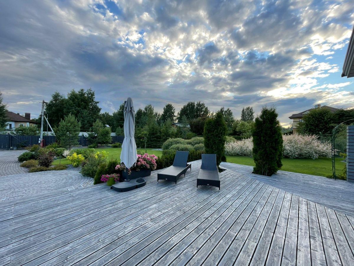 Загородный дом в клубном коттеджном посёлке Новый Мир Репино. 5 мин. езды от ЗСД. Благоустроенная охраняемая территория с зонами для отдыха и спорта. Основной дом из клеенного бруса с огромной террасой. В доме 4 спальни, кабинет с камином, огромная гостиная с поворотным камином и выходом на террасу, удобная кухня, оборудованная качественной бытовой техникой, сауна с комнатой отдыха СУ и выходом на террасу с душем, 3 гардеробные комнаты. 4 сан узла с ванной и душем. Котельная с прачечной. На террасе есть зоны барбекю, обеденная, шезлонги и душ. Также на участке есть дом для гостей/прислуги с комнатой кухней и сан. узлом. Отдельный просторный блок для хранения велосипедов и садового инвентаря, Крытая парковка на 3/6 машин. Благоустроенная территория, стильный ландшафтный дизайн.