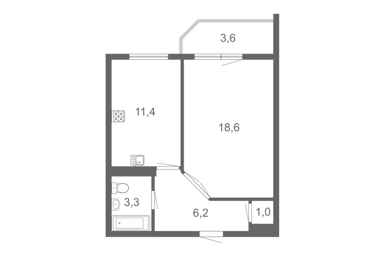 Комната 18.6кв.м. имеет выход на лоджию.