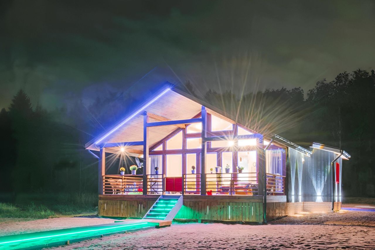 В процессе строительства: Отдельно стоящий автомобильный навес + шкафы для хранения Пирс с выходом на озеро 3х5 метров Живая изгородь из 2.5 метровых елей на фасадной части участка и ивы ломкой (шаровидной) с двух сторон дома ведущих к озеру, рядом с пирсом березы повислые (юнге) Автоматические прозрачные жалюзи для открытой террасы.