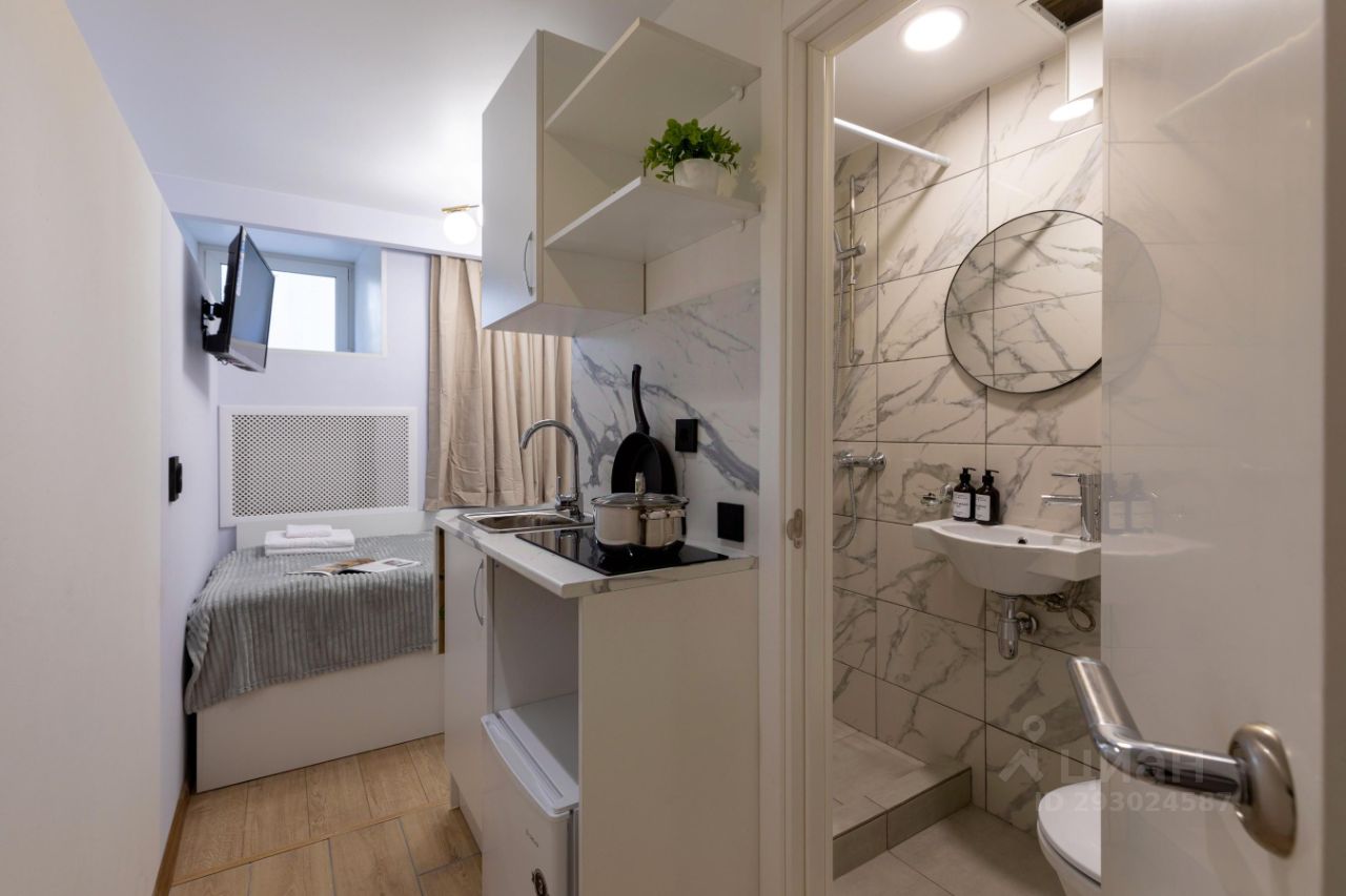 В студии имеeтcя: - Coбcтвeннaя кухня (pакoвинa, индукционная плита, xoлодильник, посуда для приготовления пищи).
